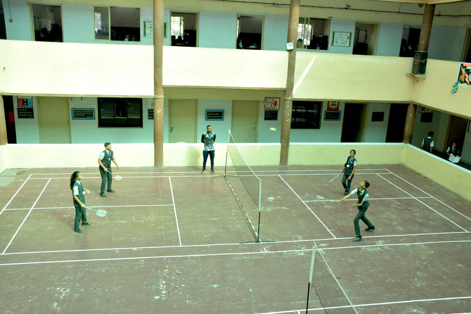 Maorthia English Medium School promotes fitness and teamwork through a well-maintained indoor sports area, as depicted in the image. The court is specially designed for games like badminton, providing students with an excellent space to stay active and build sporting skills. Supervised by trained instructors, students engage in regular physical education activities and friendly matches, fostering a spirit of discipline, sportsmanship, and healthy competition. This indoor facility ensures uninterrupted sports training regardless of weather conditions, contributing significantly to the holistic development of students beyond the classroom.